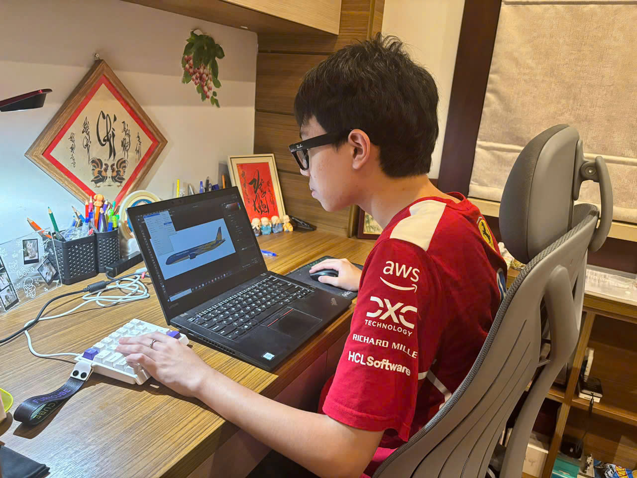 Vũ Quang Anh say mê vẽ lại những chiếc máy bay trên máy tính.