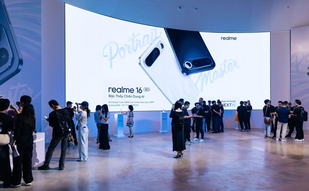 Tại sự kiện, realme Việt Nam cũng chính thức giới thiệu realme 16 5G – mẫu smartphone được định vị là “Bậc Thầy Chân Dung AI”, với thiết kế thanh camera ngang chuẩn flagship lần đầu xuất hiện trong phân khúc, realme 16 5G không chỉ định hình diện mạo cao cấp mà còn kiến tạo sự cân bằng trong từng đường nét, mang lại cảm giác cầm nắm dễ chịu cho nhu cầu sử dụng linh hoạt suốt cả ngày dài.