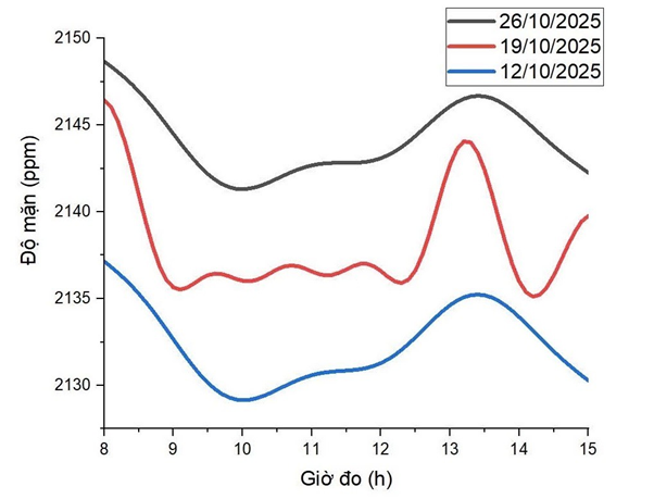 Khi khảo sát trong trong 3 ngày (12/10; 19/10 và 26/10) ở khu vực sông Cần Giuộc chảy qua địa phận xã Cần Đước thu được kết quả: Nhiệt độ dao động từ 29 - 42 độ c, độ pH trung bình 6,63 và độ mặn trung bình 2132,30 ppm. Từ số liệu trên cho thấy, tuy đang trong giai đoạn mùa mưa nhưng độ mặn khu vực này tương đối cao mặc dù nhiệt độ cũng như độ pH tương đối ổn định. Dự đoán vào mùa khô năm sau, khu vực sẽ chịu ảnh hưởng rất lớn đặc biệt đến cây trồng và vật nuôi khu vực, người dân nên chủ động có những biện pháp ứng phó cho mùa hạn hán sắp tới.