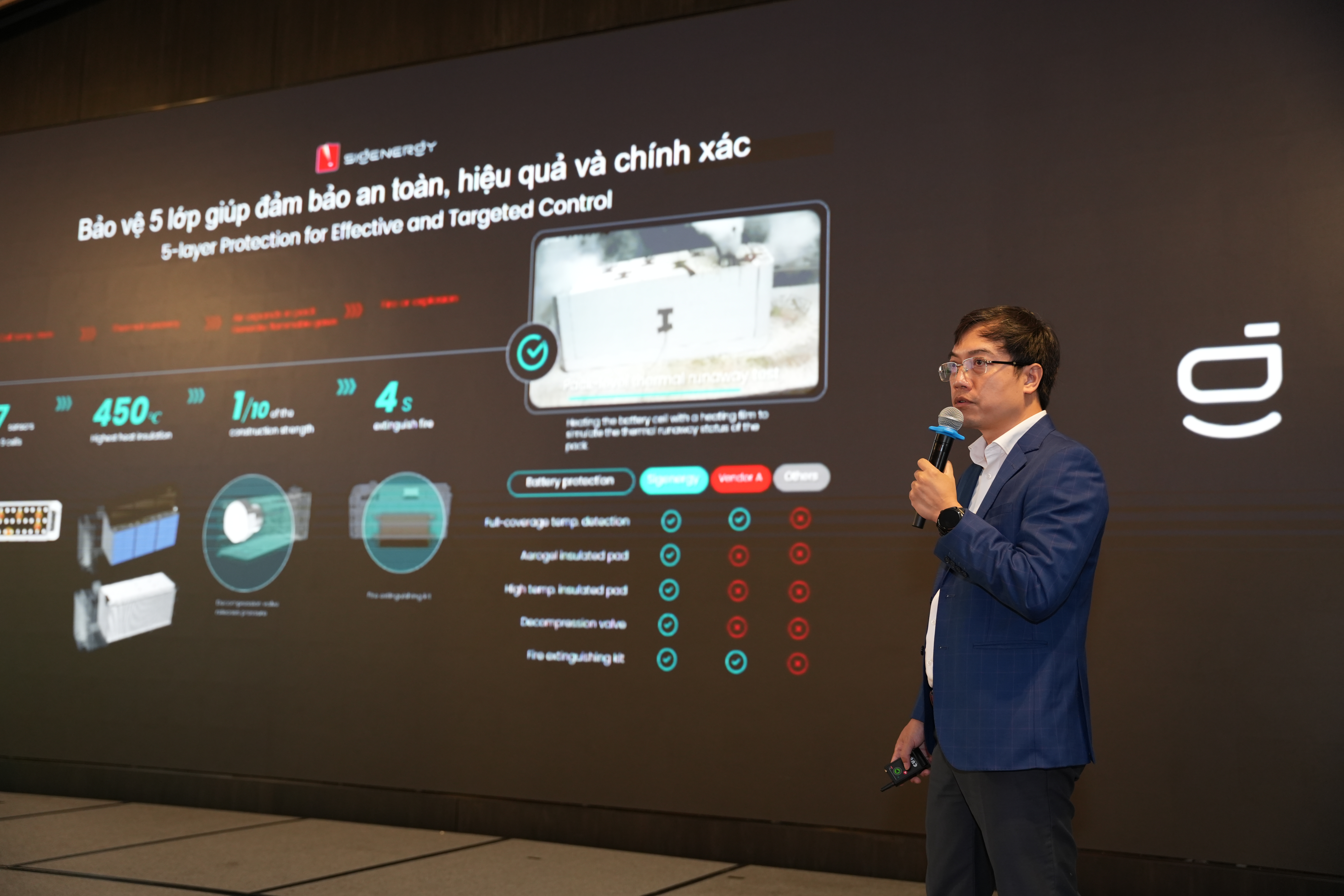 Tiếp nối chương trình, Ông Lê Nho Thông - Giám đốc điều hành Sigenergy Việt Nam, Lào, Campuchia đã chia sẻ về giải pháp năng lượng thông minh của Sigenergy với định hướng “Tối ưu công nghệ – Nâng tầm hiệu quả – Bền vững dài lâu”. Ông nhấn mạnh vai trò của công nghệ trong việc quản lý, lưu trữ và phân phối năng lượng, giúp doanh nghiệp tối ưu chi phí vận hành, gia tăng hiệu suất hệ thống và đảm bảo tính bền vững trong dài hạn.