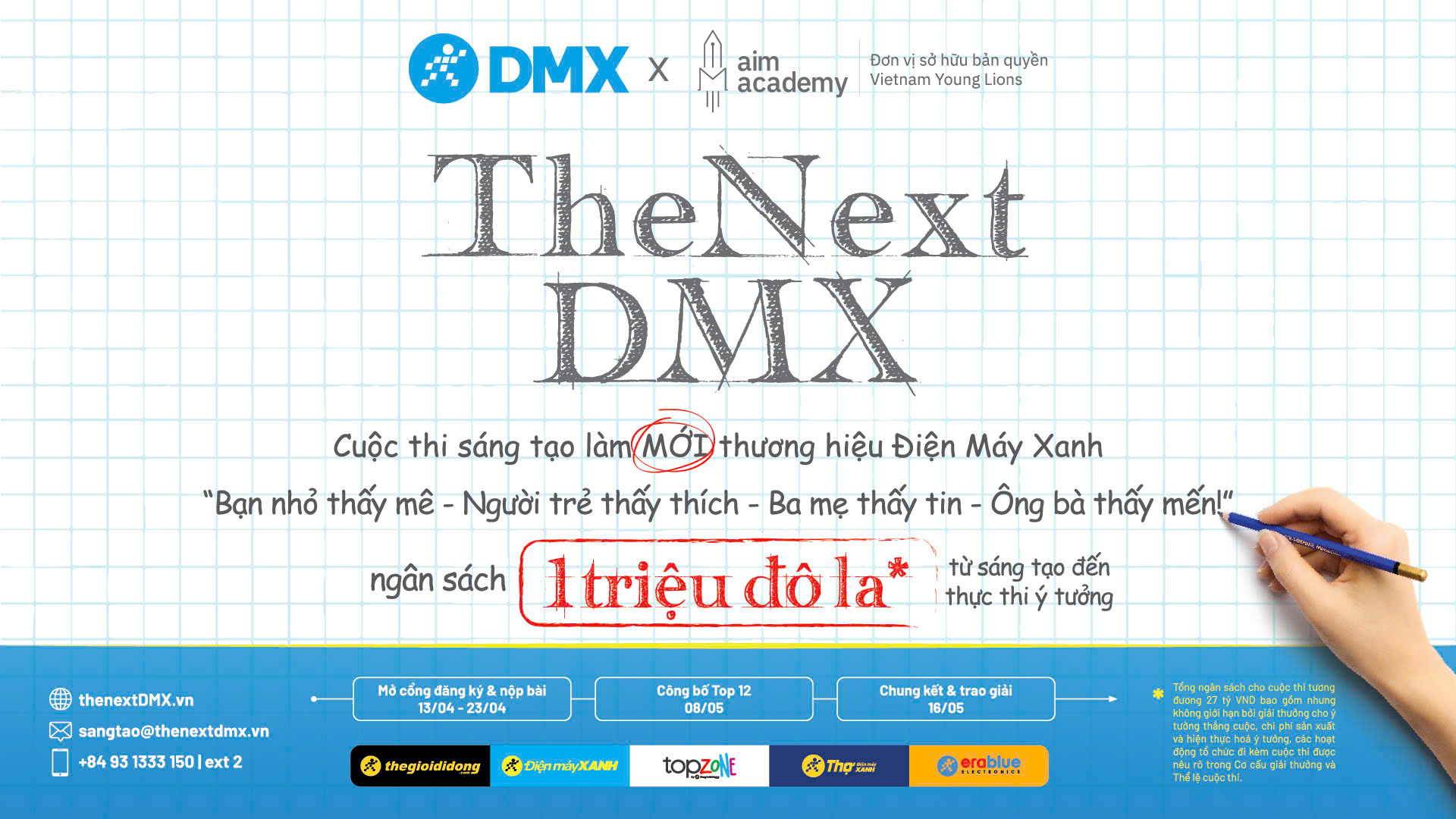 Đặc biệt, nhà bán lẻ cũng thể hiện cam kết thực hiện cuộc thi một cách nghiêm túc và chuyên nghiệp bằng cách bắt tay đồng tổ chức cùng AIM Academy, đại diện chính thức của Cannes Lions (được coi là giải Oscar của giới quảng cáo sáng tạo) tại Việt Nam, và là đơn vị tổ chức độc quyền cuộc thi Vietnam Young Lions. AIM là đơn vị tổ chức dày dạn kinh nghiệm và có tiếng trong cộng đồng sáng tạo Việt Nam với việc tổ chức thành công cuộc thi Vietnam Young Lions trong suốt 10 năm qua. Không chỉ thực hiện cuộc thi, DMX cũng tài trợ, đồng hành cùng cộng đồng sáng tạo Việt Nam thông qua Cam kết hỗ trợ phát triển tài năng sáng tạo của AIM. Sự hợp tác này biến "The Next DMX" thành một sân chơi sáng tạo chuyên nghiệp, nơi các ý tưởng đột phá được trân trọng và đánh giá đúng mực.