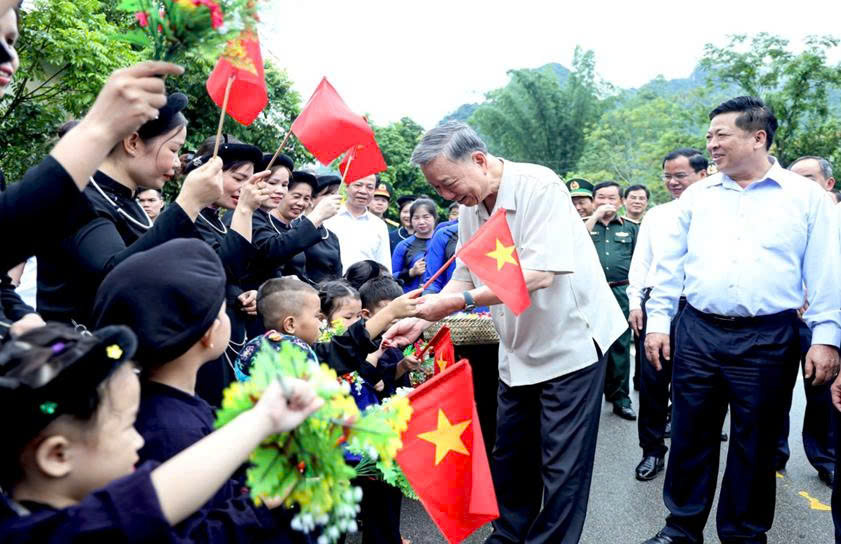 Chủ tịch nước Tô Lâm với thiếu nhi xã Trường Hà, huyện Hà Quảng, tỉnh Cao Bằng ngày 10-6-2024 _Nguồn: vpctn.gov.vn