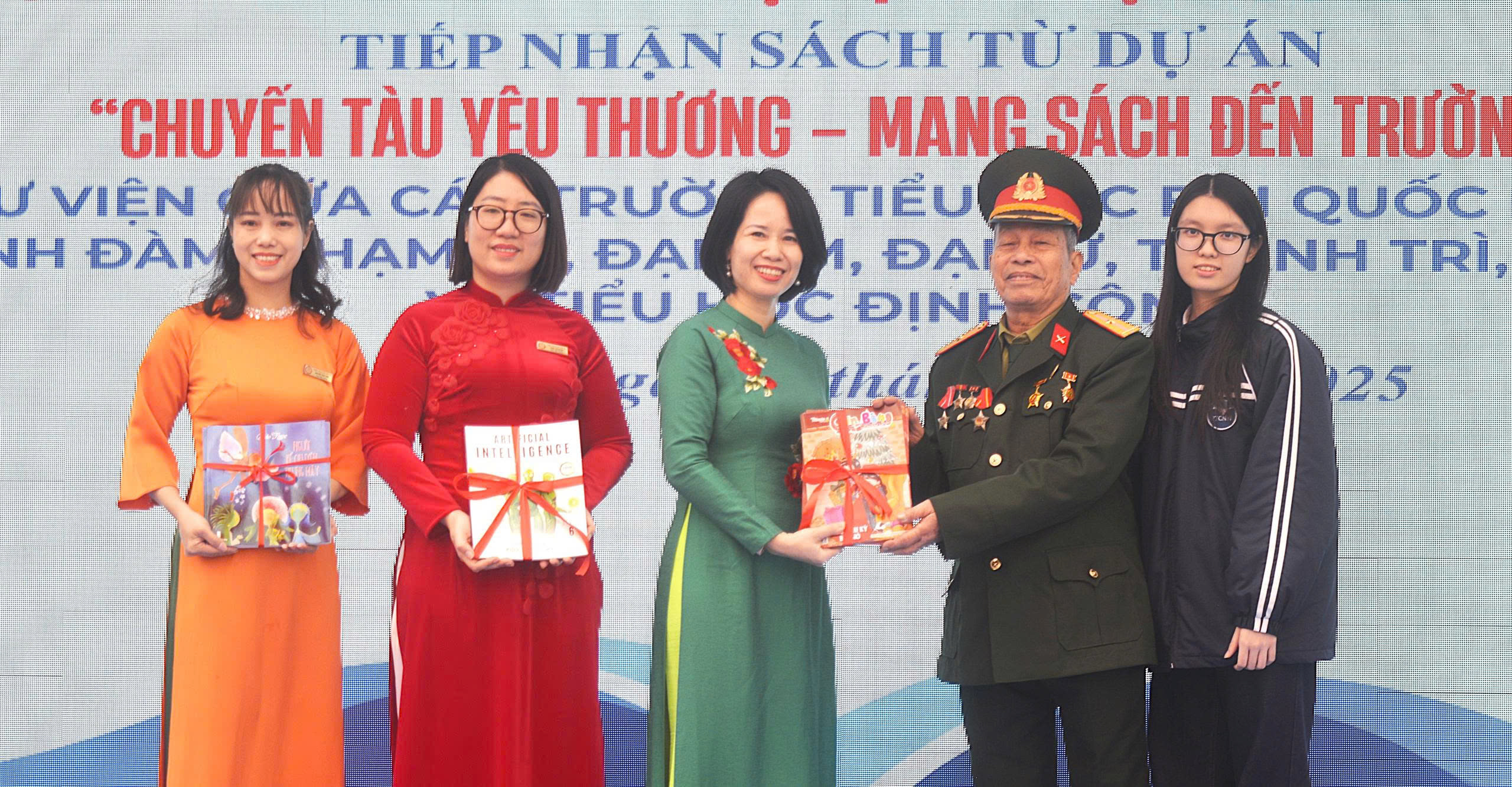 Các khách mời của chuyến tàu yêu thương, mang sách đến trường giao lưu chủ đề “Anh bộ đội cụ Hồ- từ trang sách đến với học sinh”