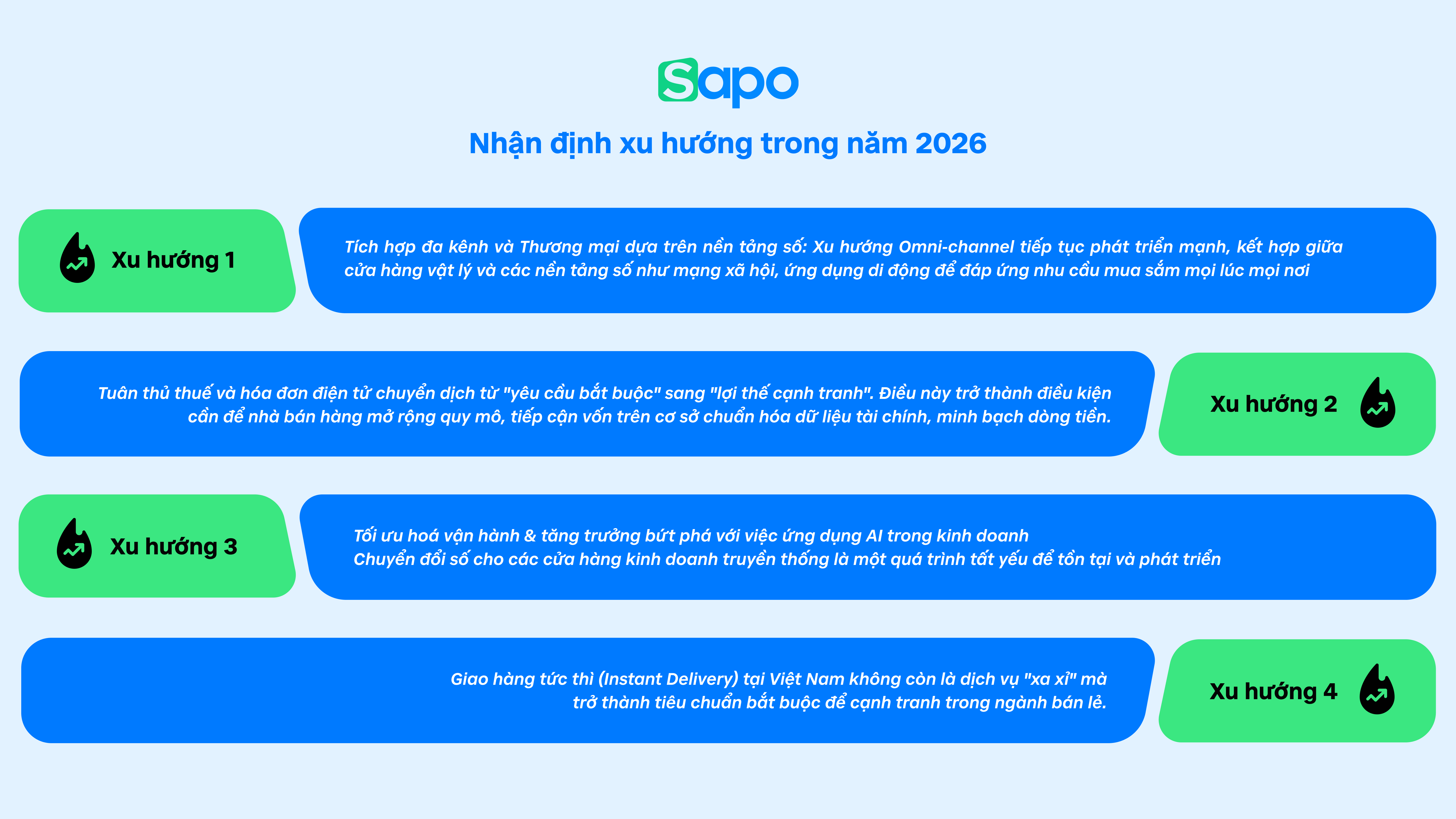 Nhìn lại năm 2025, bức tranh bán lẻ Việt Nam cho thấy sự dịch chuyển rõ rệt từ tăng trưởng theo chiều rộng sang ưu tiên hiệu quả, tuân thủ và vận hành bài bản. Bước sang năm 2026, đa kênh, AI và chuẩn hóa thuế - hóa đơn điện tử không chỉ là lựa chọn, mà trở thành nền tảng để nhà bán hàng duy trì khả năng cạnh tranh và hướng tới tăng trưởng bền vững.