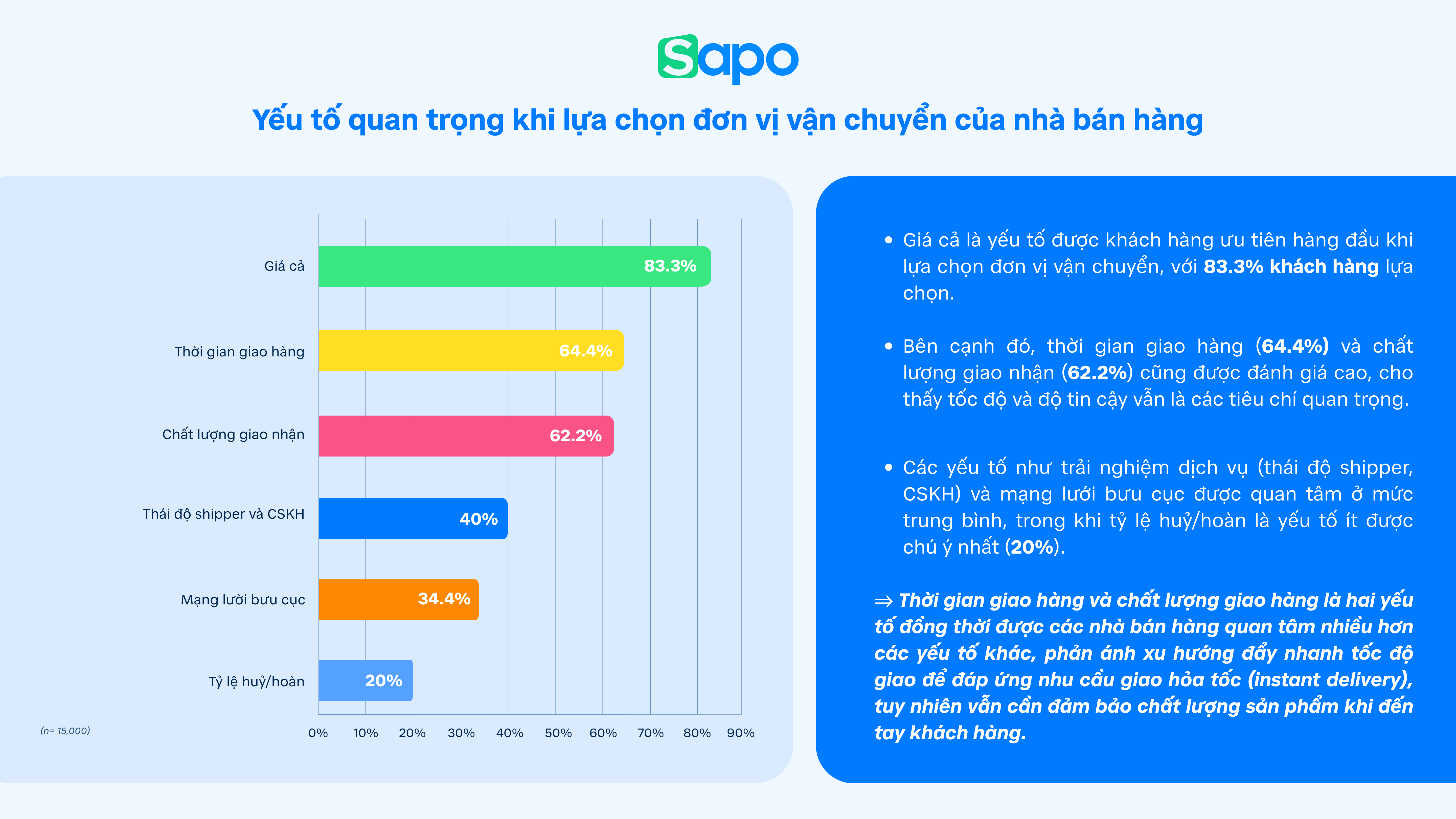 Khi đánh giá về hiệu quả bán hàng, đặc biệt ở khả năng tạo đơn nhanh và mở rộng tệp khách hàng, các kênh trực tuyến lại nổi bật rõ rệt. Có tới 44% nhà bán hàng cho rằng mạng xã hội và sàn thương mại điện tử là kênh hiệu quả nhất, trong đó sàn TMĐT chiếm 28,5% và mạng xã hội chiếm 15,5%. Điều này cho thấy với các nhà bán hàng đa kênh, động lực tăng trưởng và kỳ vọng hiệu quả của nhà bán hàng đang dịch chuyển mạnh sang các kênh online.