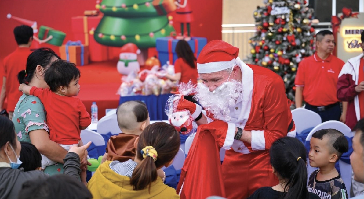 Ông Conor M O'Neill, Phó Tổng Giám đốc Tài Chính của Prudential Việt Nam hóa thân thành ông già Noel mang đến các em những món quà ý nghĩa và niềm vui trong mùa Giáng Sinh này. Ảnh: Prudential Việt Nam.