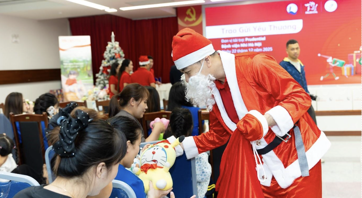 Tiếp nối hành trình đó, sự kiện tại Bệnh viện Nhi Hà Nội ngày 22/12 và Bệnh viện Nhi Trung Ương ngày 23/12 mang đến không khí Giáng Sinh an lành cho hàng nghìn bệnh nhi phía Bắc. Những món quà nhỏ, những cái bắt tay, lời hỏi thăm từ đại diện Prudential và các đối tác đã góp phần tạo nên những khoảnh khắc tích cực, giúp các em và gia đình vơi bớt áp lực trong quá trình điều trị.
