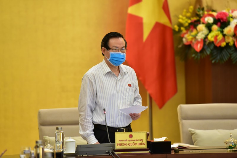 Phó Chủ tịch Quốc hội Phùng Quốc Hiển phát biểu tại phiên họp |